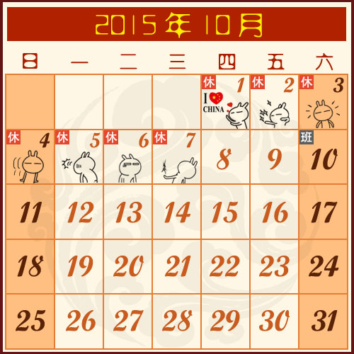 2015年10月1日(星期四)—— 10月7日(星期三),共7天,10月10日(星期六)正常上班。