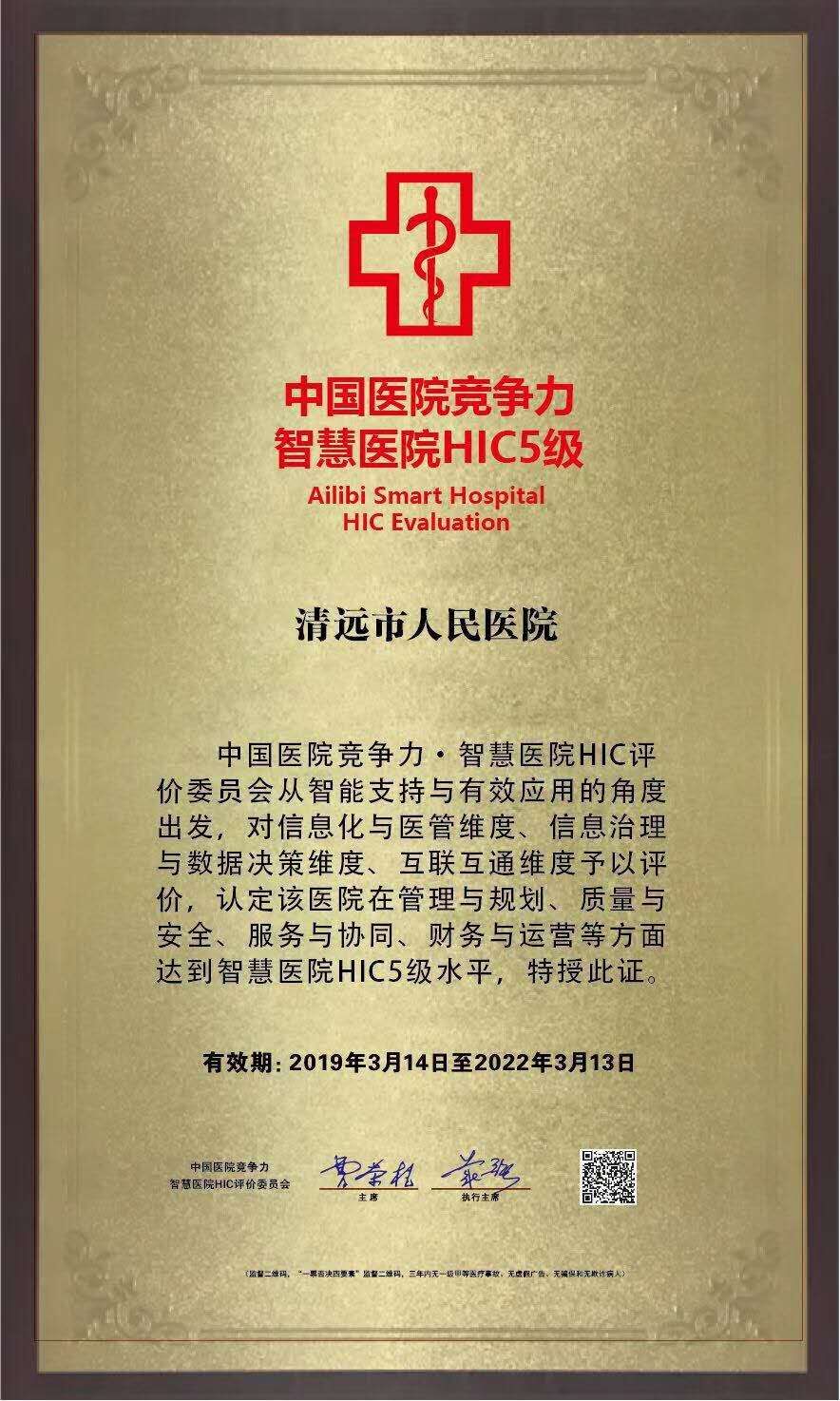 近日,清远市人民医院获评中国医院竞争力智慧医院HIC5级,标志着该院在智慧医院信息化建设方面已达到同行领先水平。