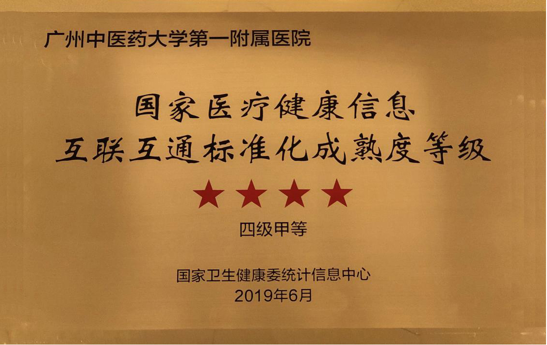 6月20日,第14届“中国卫生信息技术/健康医疗大数据应用交流大会暨软硬件与健康医疗产品展览会”在西安盛大召开。在2018年度国家医疗健康信息互联互通标准化成熟度评测单位举行授牌仪式中,惠侨标杆客户广州中医药大学第一附属医院顺利获评为“四级甲等”,成为通过2018年互联互通新标准的首批医疗机构。