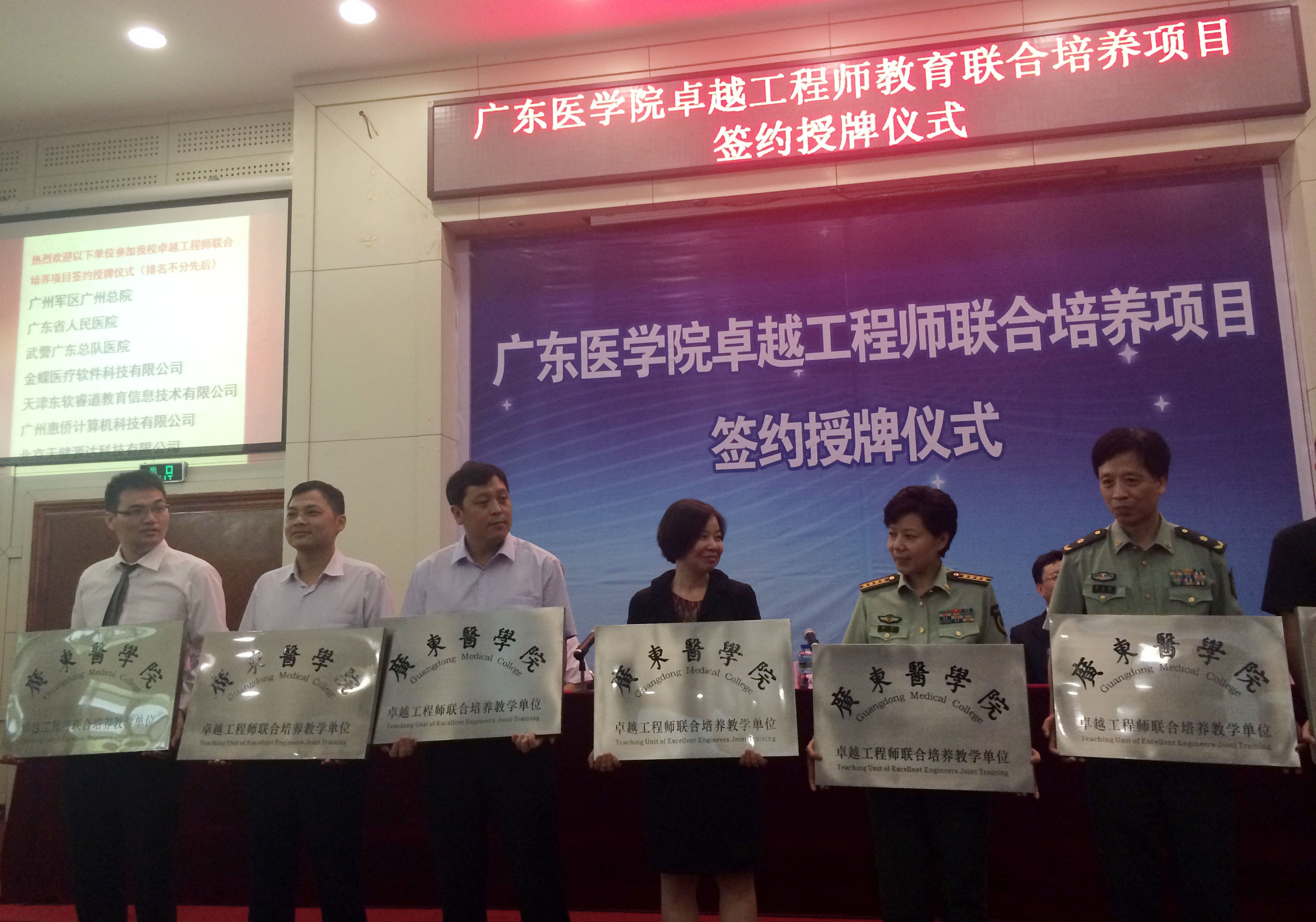 2014年5月29日,广东医学院卓越工程师联合培养项目启动会,涵盖项目签约授牌仪式、项目实施座谈会和现场招聘会,在广东医学院东莞校区隆重举行,我司刘云鹤副总经理、杨玉茹经理等一行出席了本次活动。